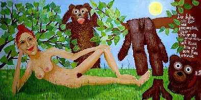 Während des mehrjährigen Aufenthaltes fand sie hier ihren einzigartigen Stil zwischen der tropischen Vielfalt der Farben, der Tierwelt des Regenwaldes und der traditionellen brasilianischen Volkskunst. Wild, naiv und bunt.